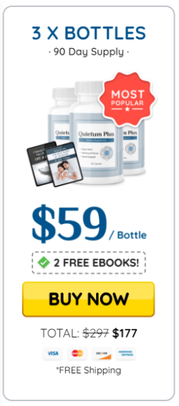 In addition to the Quietum Plus supplement, customers also receive special discounts for 3 and 6 bottle packs and two e-books: “1-Minute Natural Tips to Hear Like a Ninja” and “How to Get the best sleep of your life in just 7 Days”.